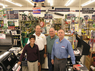 Above: From left, Jennifer, Grant and Terry Martin join Ray Yaw Jr., store manager, in this shot inside the present-day Merwin's Hardware. |